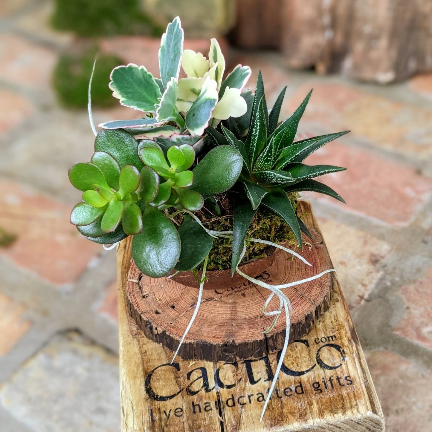 - Four unique succulents (Haworthia, Crassula, Kalanchoe, and Spanish Moss)