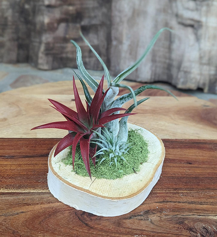 Birchwood Trio Air Plant Garden - Artisan Air Plants on Natural Wood Slice